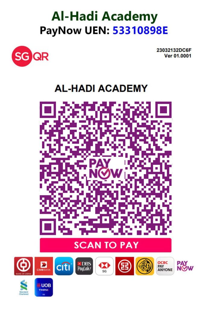 - Cheque: Made payable to Al-Hadi Academy